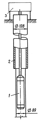 1 – зонд; 2 – обсадная труба; 3 – измерительная аппаратура.