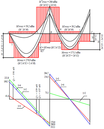 Рисунок 4 - Огибающая эпюра моментов и перерезывающих сил