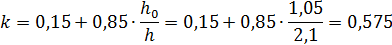 Где k – коэффициент, учитывающий переменность сечения балки: