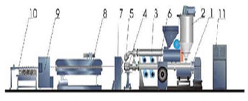 Линия предназначена для получения гофрированного листа из композиционного полимерного материала армированного металлической сеткой. Технологическая схема подготовки композиционных материалов предоставляется по запросу и формируется согласно конкретным условиям сбора полимерного вторсырья.
